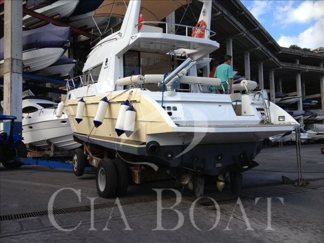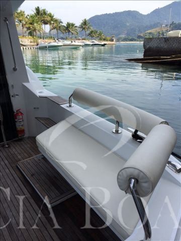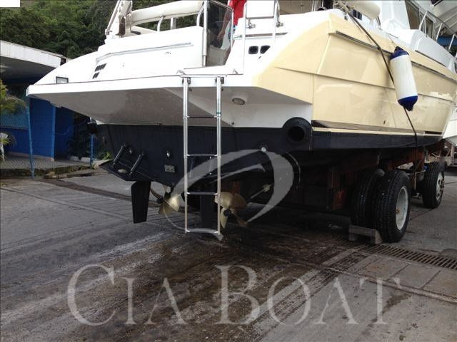 Lancha totalmente reformada em 2010, com a criação da cozinha no piso inferior com bancada de marmore, exaustor e novo lay out. Reforma geral dos dois banheiros com substituição de ferragens, vasos elétricos, armários e a colocação de parades de pedras. Reforma das cabines com instalação de TV e som interno com novos armários. Sistema de ar condicionado independente. Toda a forração de couro do barco foi trocada. Novo sistema de TV e som instalado na área social. Todo o sistema elétrico do barco foi trocado. Toda a fiação é nova. Todo o sistema hidráulico de comando é novo. Sistema de flaps novos. Novo arranjo no fly com novos móveis e solarium. Sistema de navegação furuno de 2010. Reforma geral do casco com nova pintura no tom amarelo claro. Nova capa total do barco. Novo Bimine, forro e armação. Embora motor com cerca de 900 horas, foi feita troca de bombas de agua por segurança, tem uma bomba nova de reserva. Foram trocados todos os bicos para maior durabilidade do motor, alem de todas revisões. O sistema de guarda-mancebo e todo novo e soldado. O verdugo é maciço. É um barco em estado de zero para uma pessoa exigente. Pronto para navegar.