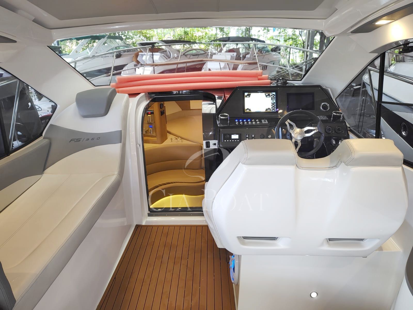 fechamento completo – Plataforma de popa submergível – Piso em teca sintética –