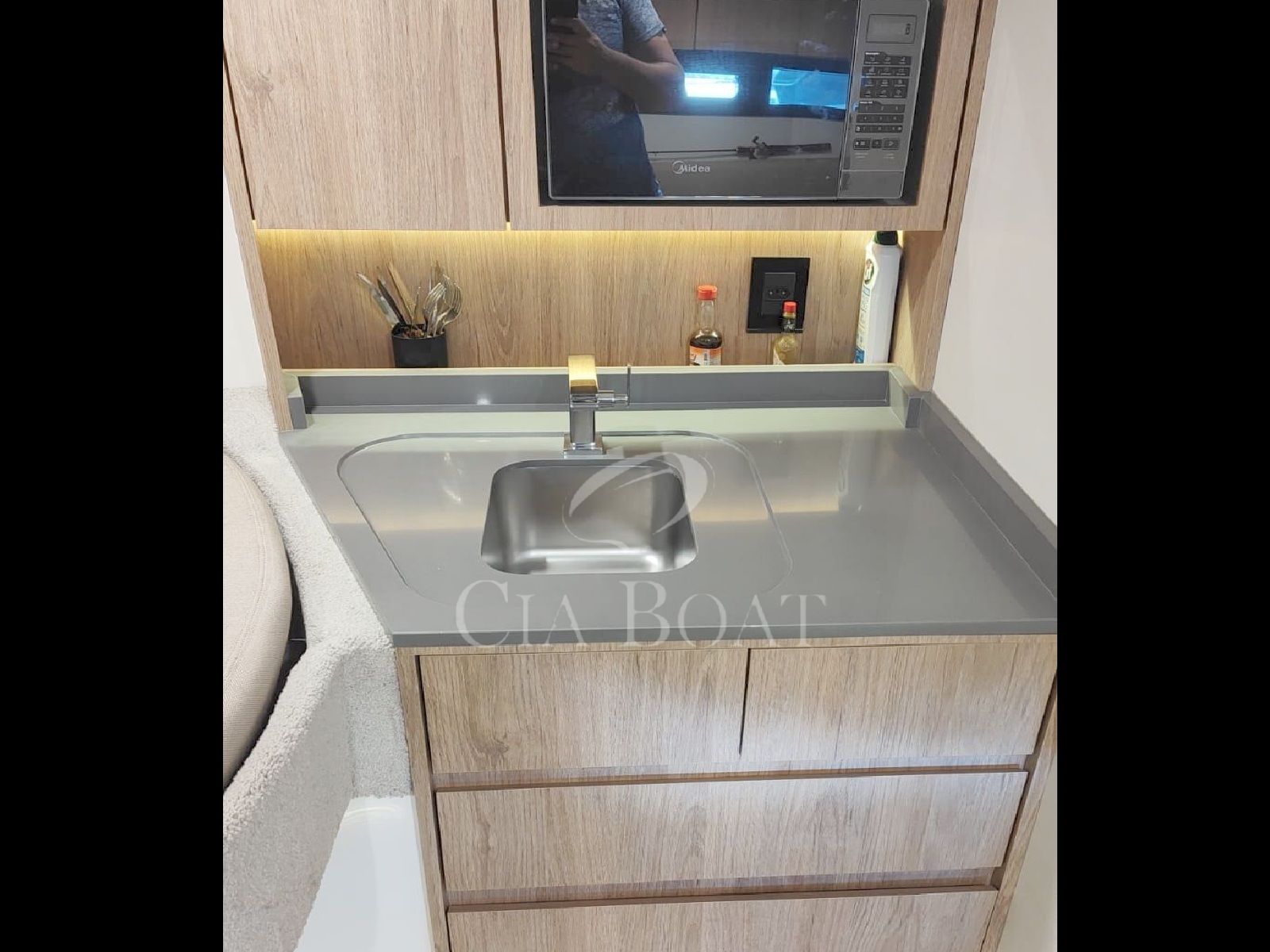Iluminação do barco toda com led – Capota Stobag elétrica na praça de popa