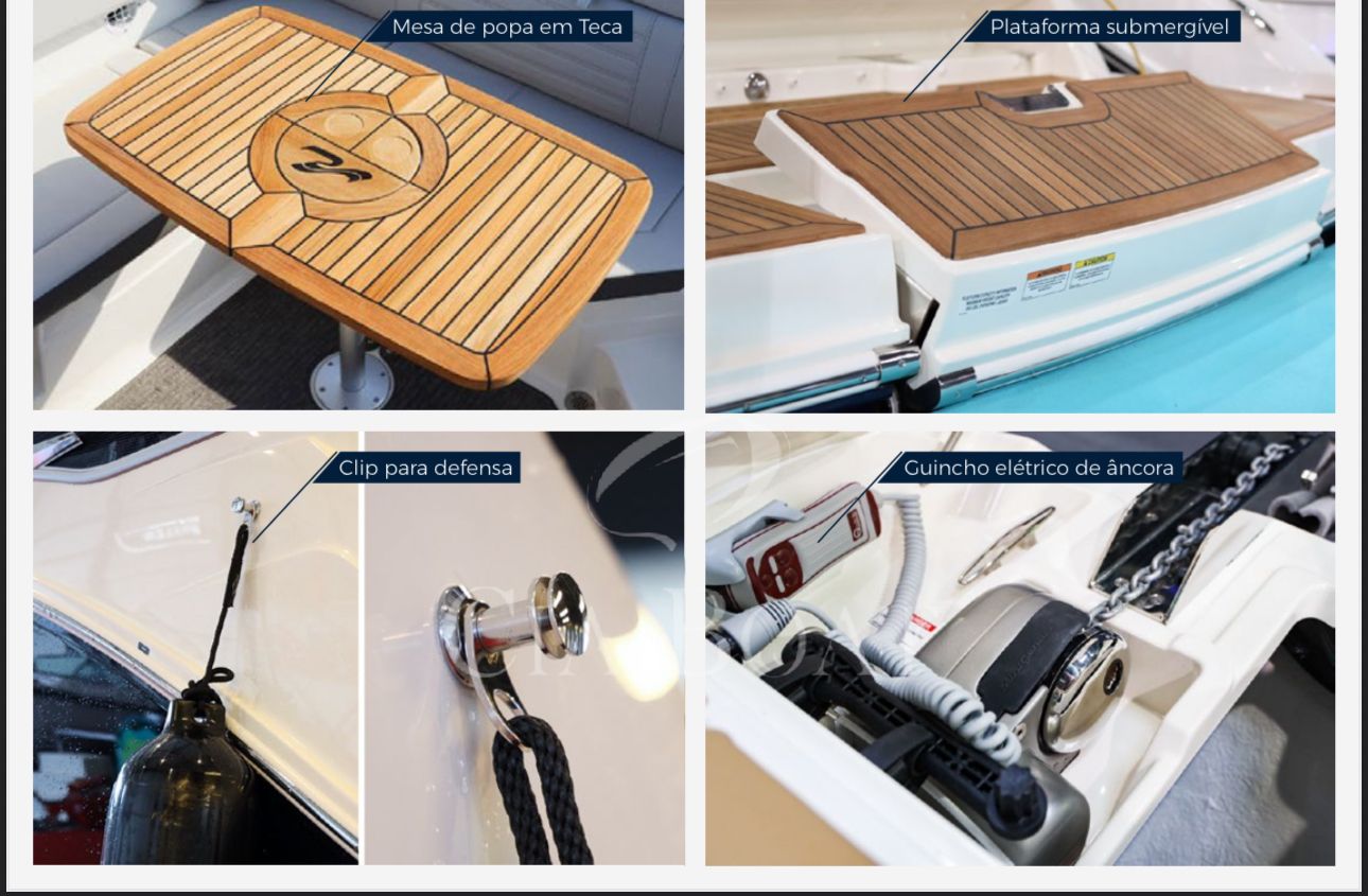 Pintura Artic White com linha decorativa em Gel Coat de altíssima qualidade com 3 anos de garantia acima da linha d'agua