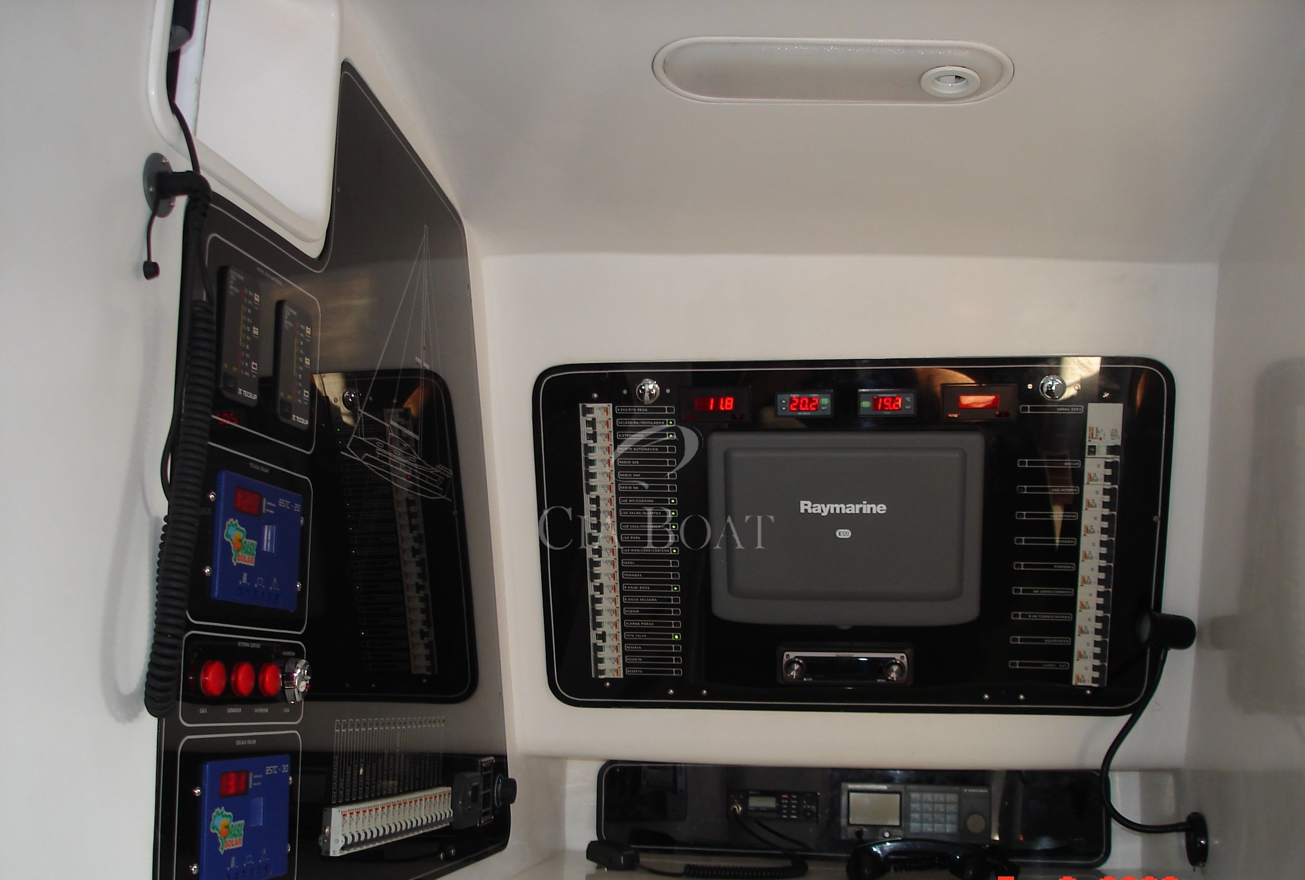 VHFs instalados com antenas, 01 deles RAYMARINE, último modelo;
