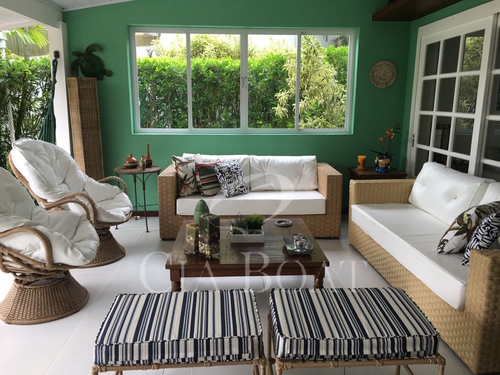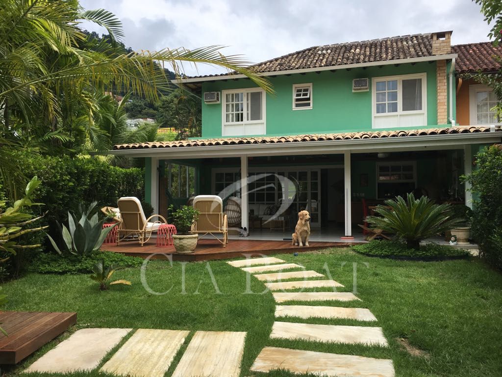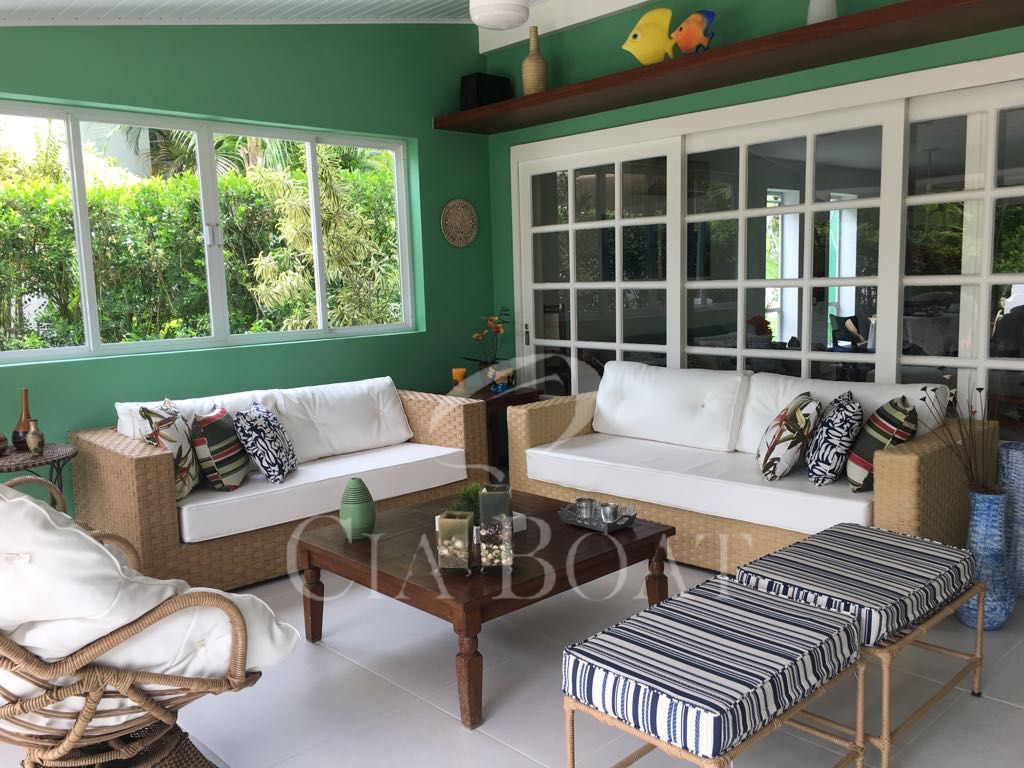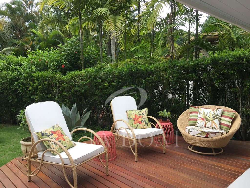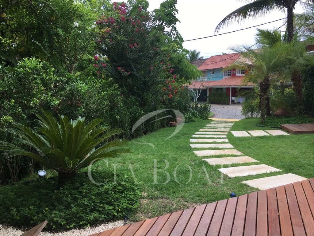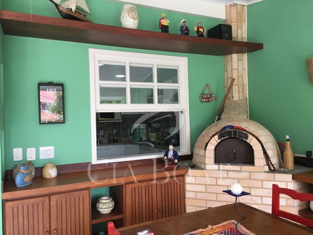 Casa em dois pavimentos: 1º pavimento com salão, lavabo, cozinha, quarto e banheiro de empregada, área de serviço, varanda com forno a lenha, jardim e garagem coberta para 3 carros, no 2º pavimento: 4 (quatro) suítes.