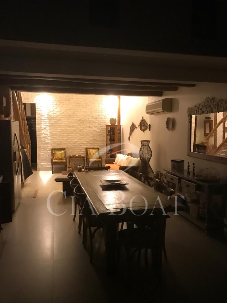 O imóvel tem 180 m2 de área construída, 3 pavimentos, uma vaga de automóvel coberta, uma vaga não coberta, e um pier com iluminação e água, para a guarda de um barco de, até, 60 pés.