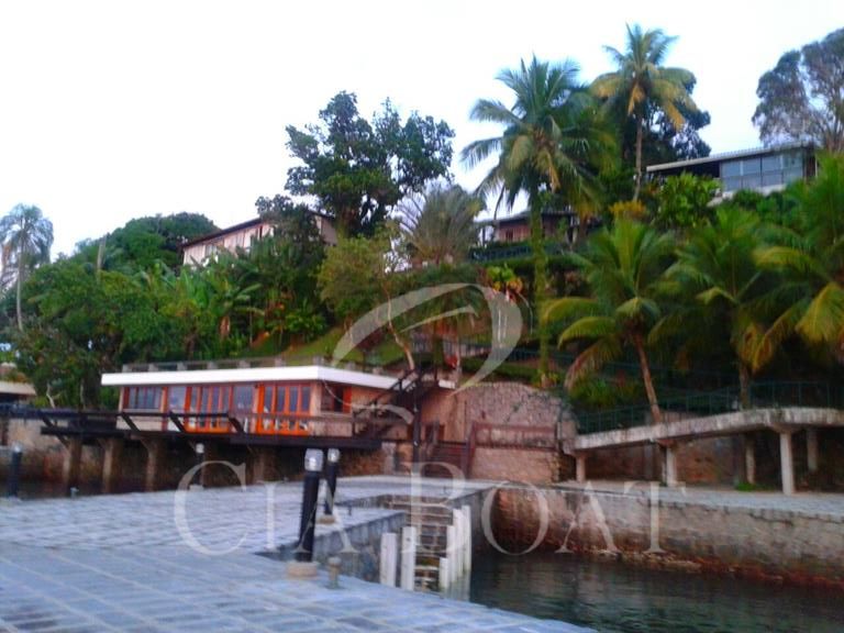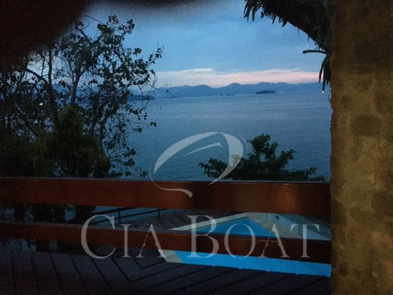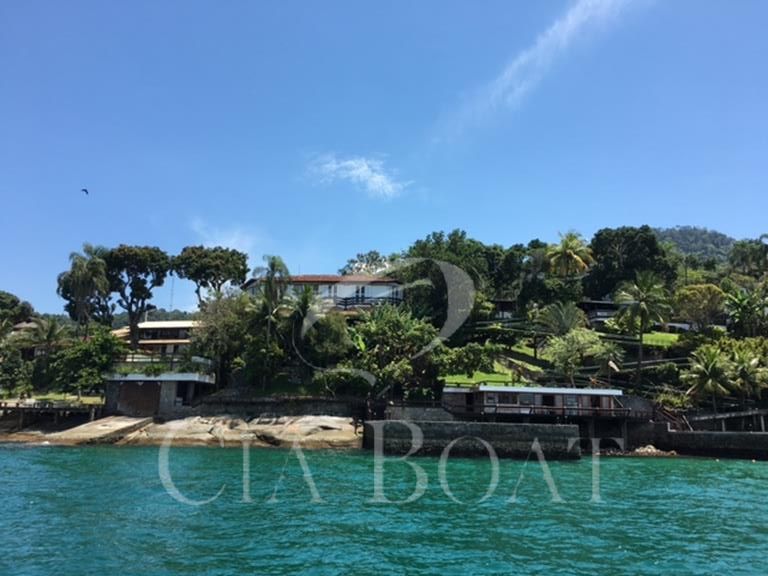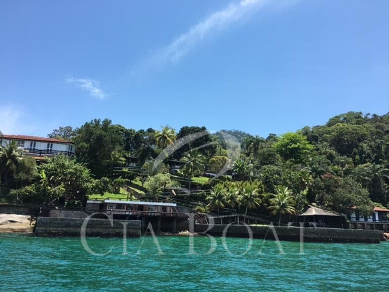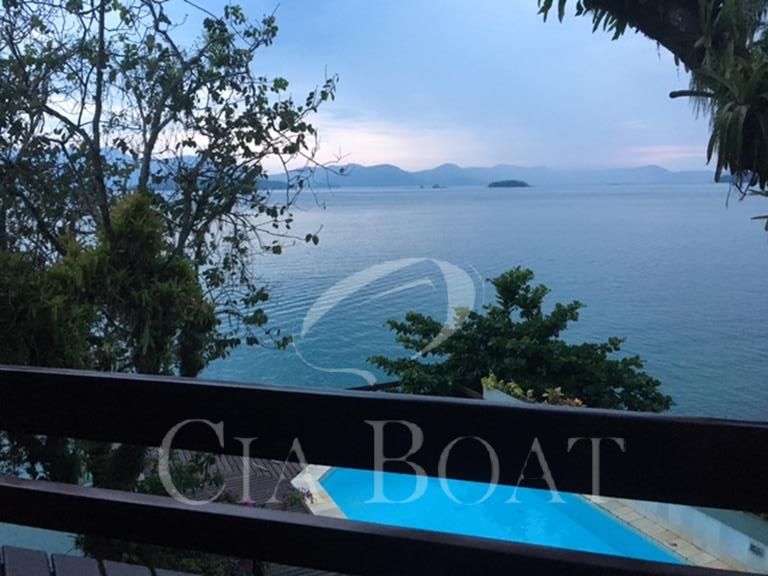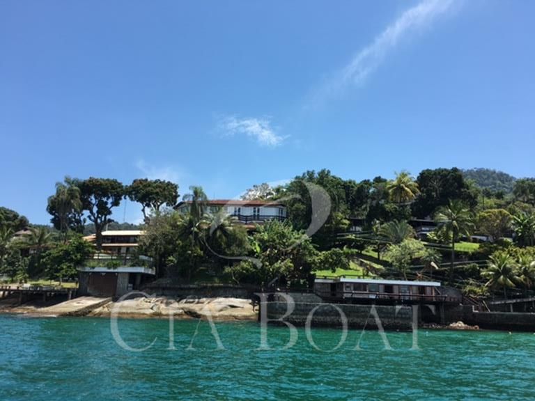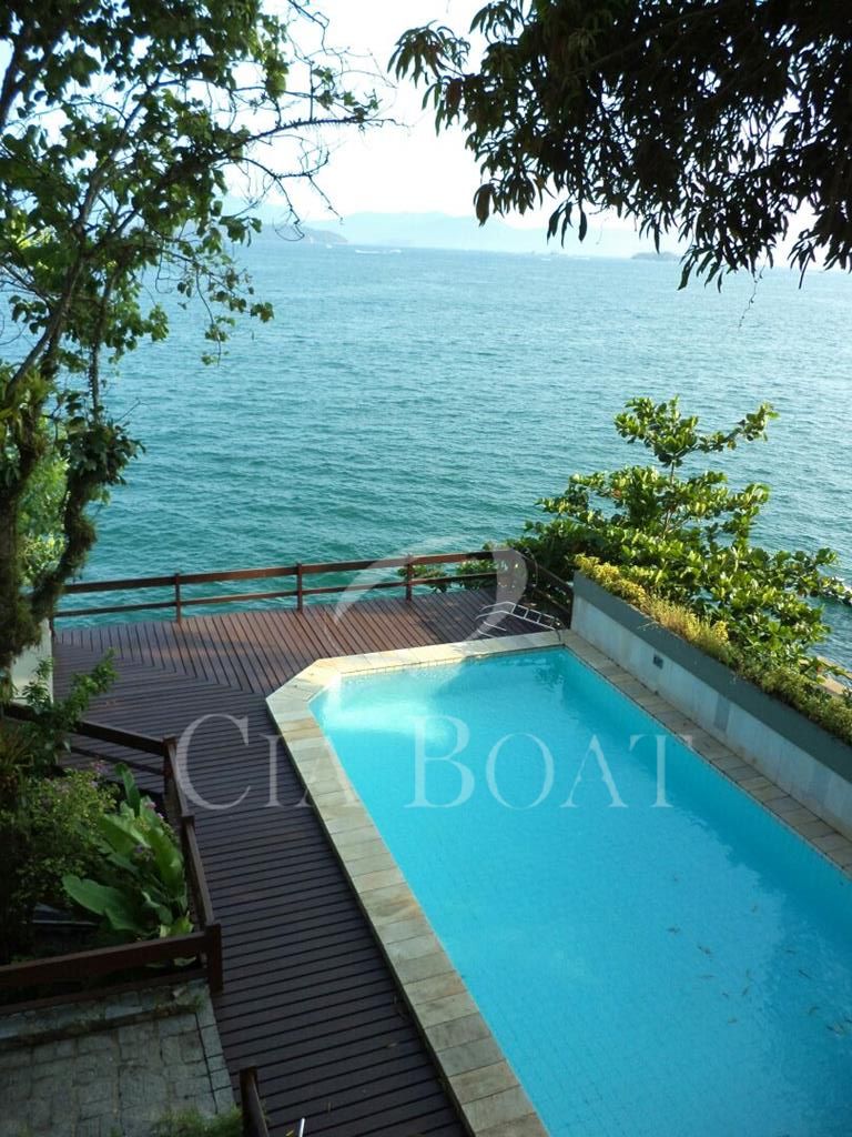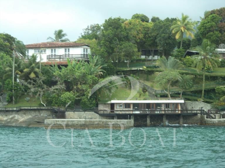 (uma com 5 suítes e outra com 4 suítes ), 01 pequeno prédio de dois apartamentos com banheiros e varanda (acomoda 10 pessoas), 02 casas de caseiros, adega, piscina, sala de jogos, garagem de barcos com rampa e guincho elétrico, churrasqueira com ampla área de apoio, 60 metro de deck sobre o mar com área de apoio sala de estar,02 banheiros, bar, cozinha, sauna), dois piers e atracadouro, heliporto (não homologado), vagas para 10 veiculo (sendo 06 vagas cobertas ).