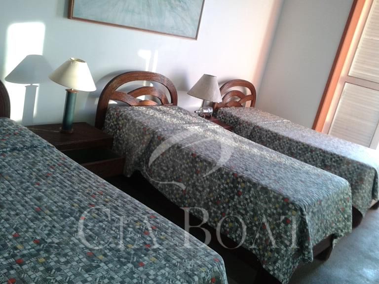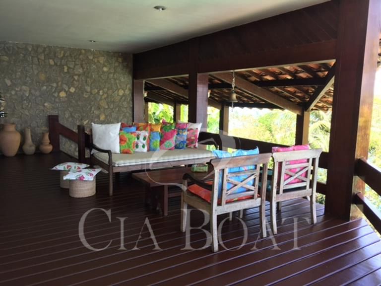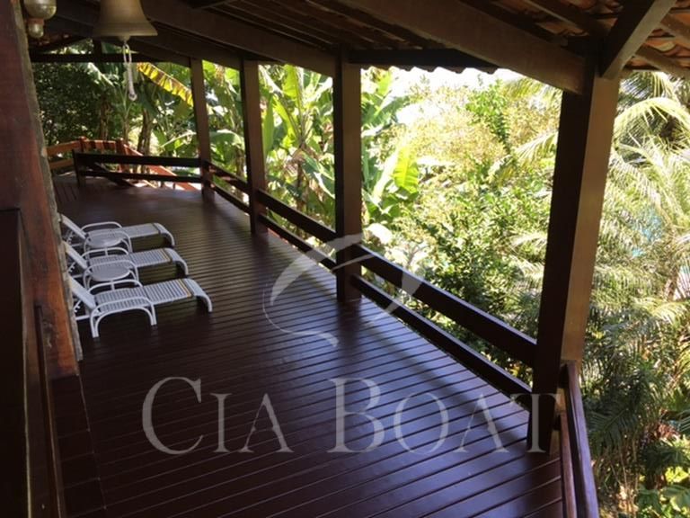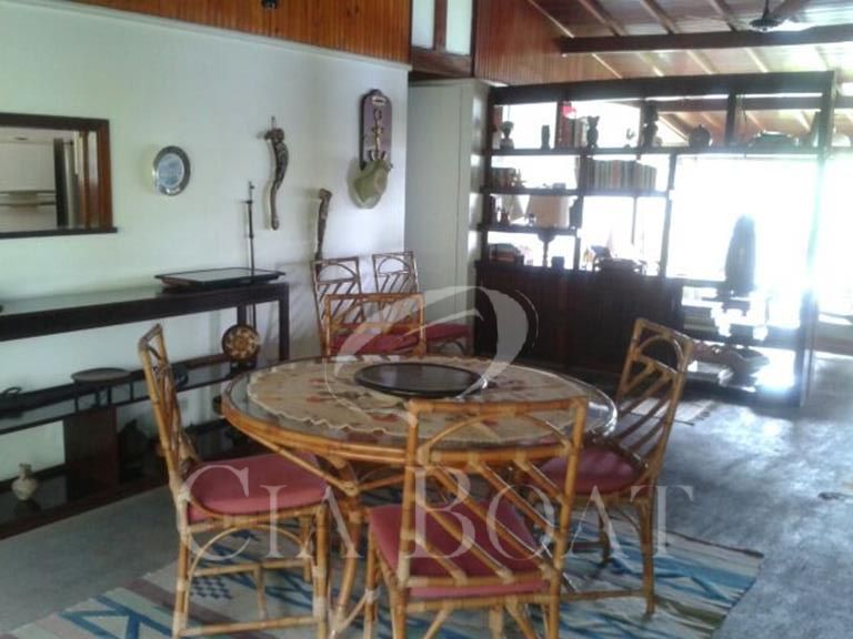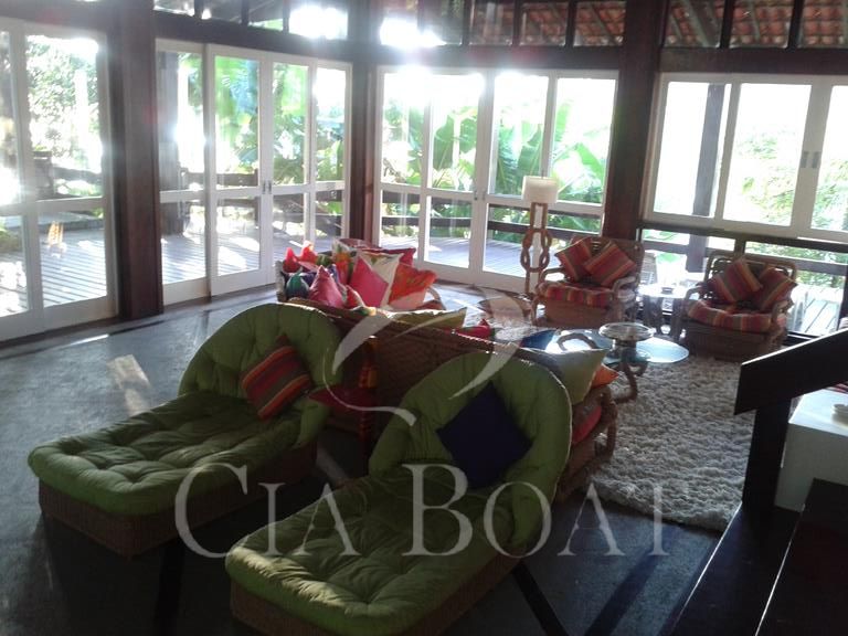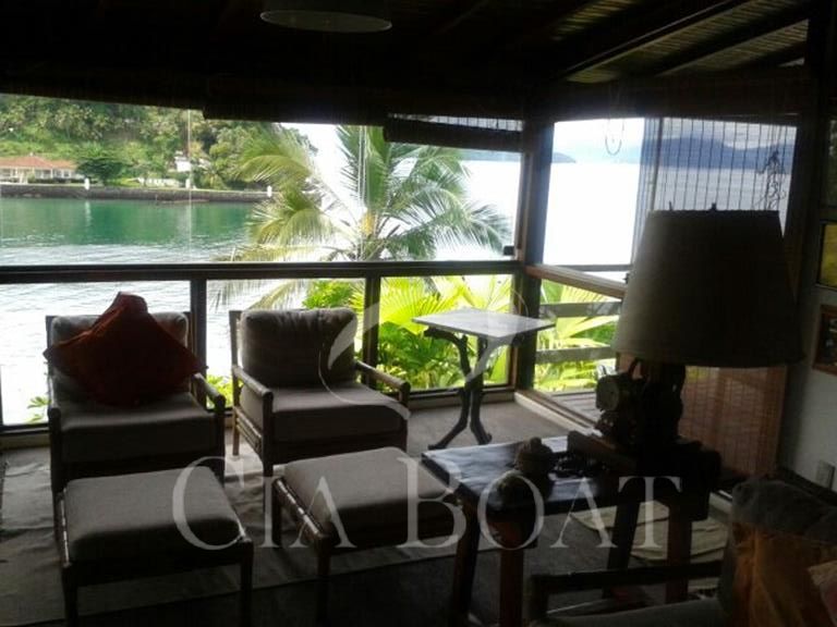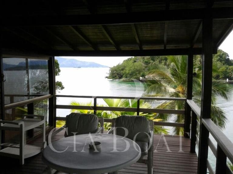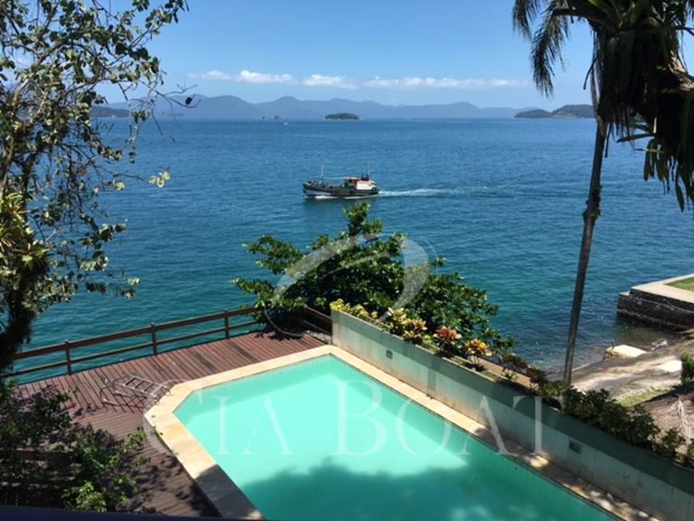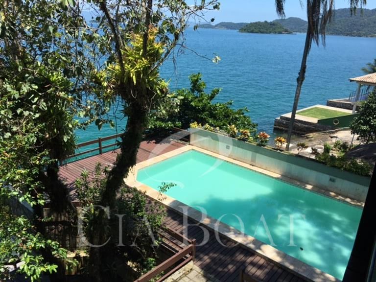 (uma com 5 suítes e outra com 4 suítes ), 01 pequeno prédio de dois apartamentos com banheiros e varanda (acomoda 10 pessoas), 02 casas de caseiros, adega, piscina, sala de jogos, garagem de barcos com rampa e guincho elétrico, churrasqueira com ampla área de apoio, 60 metro de deck sobre o mar com área de apoio sala de estar,02 banheiros, bar, cozinha, sauna), dois piers e atracadouro, heliporto (não homologado), vagas para 10 veiculo (sendo 06 vagas cobertas ).
