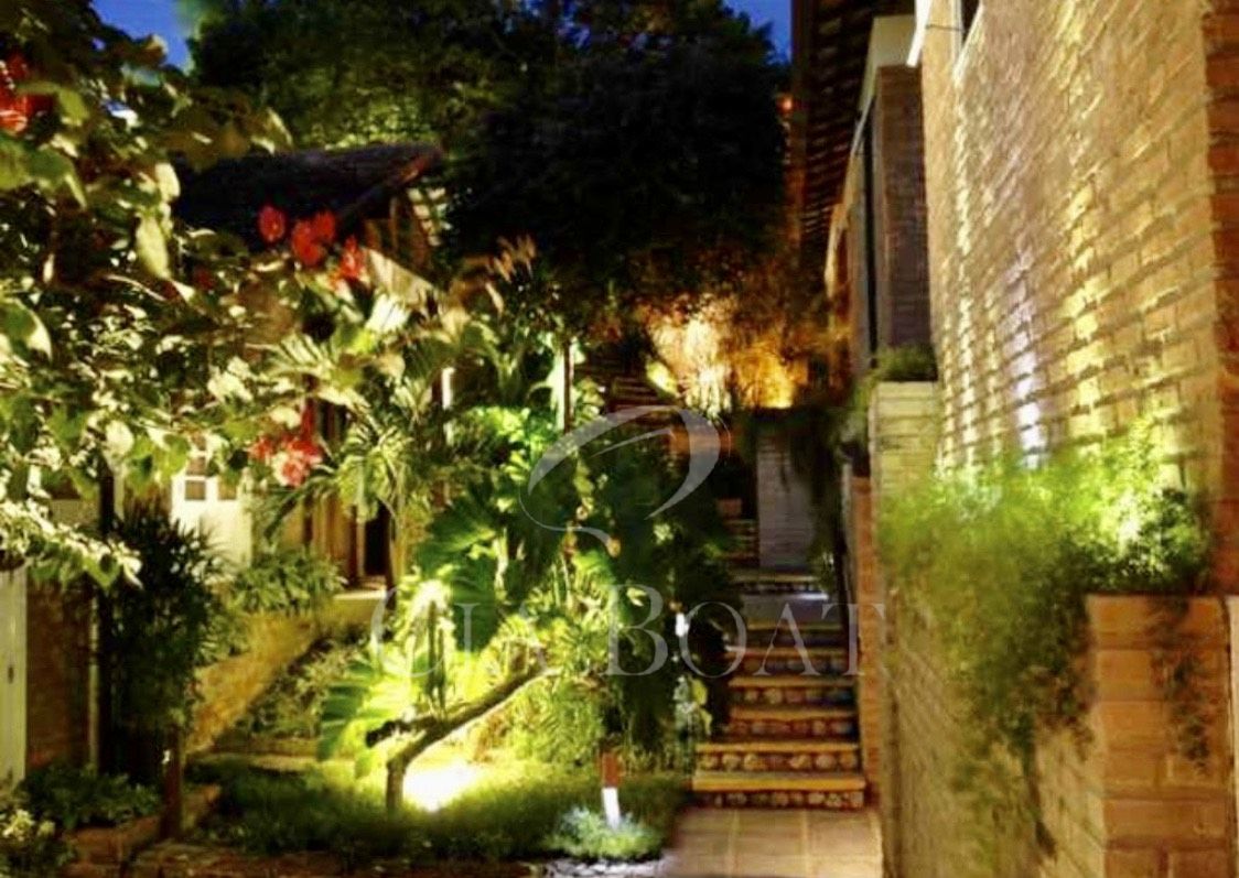 Som ambiente nos jardins e na casa principal instalado. Luzes de passagem nos jardins e iluminação de efeito nos jardins e árvores.