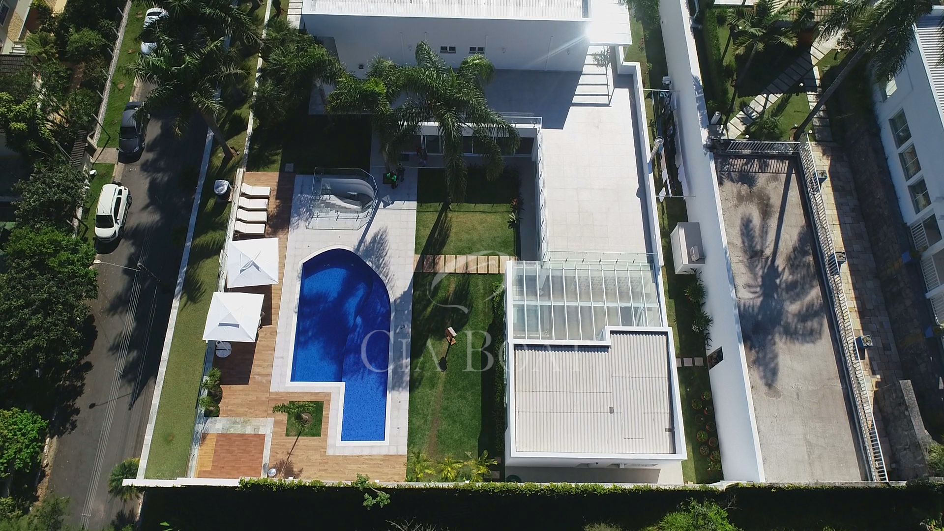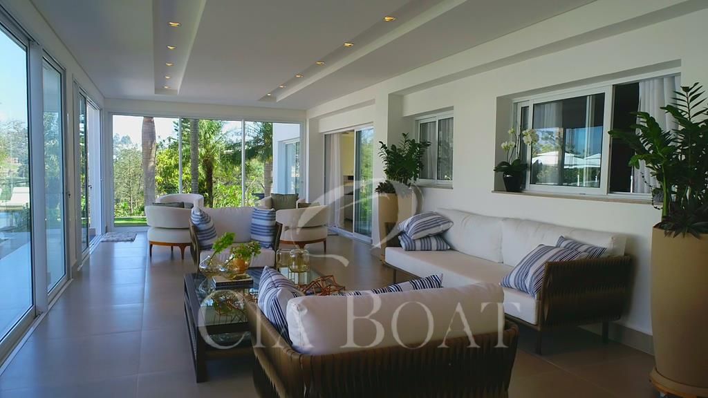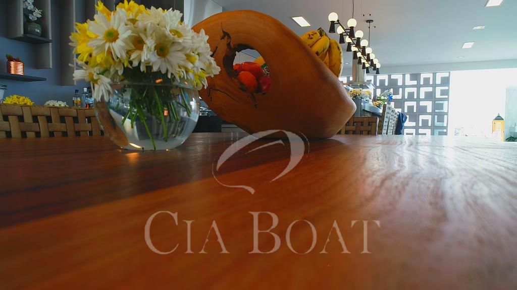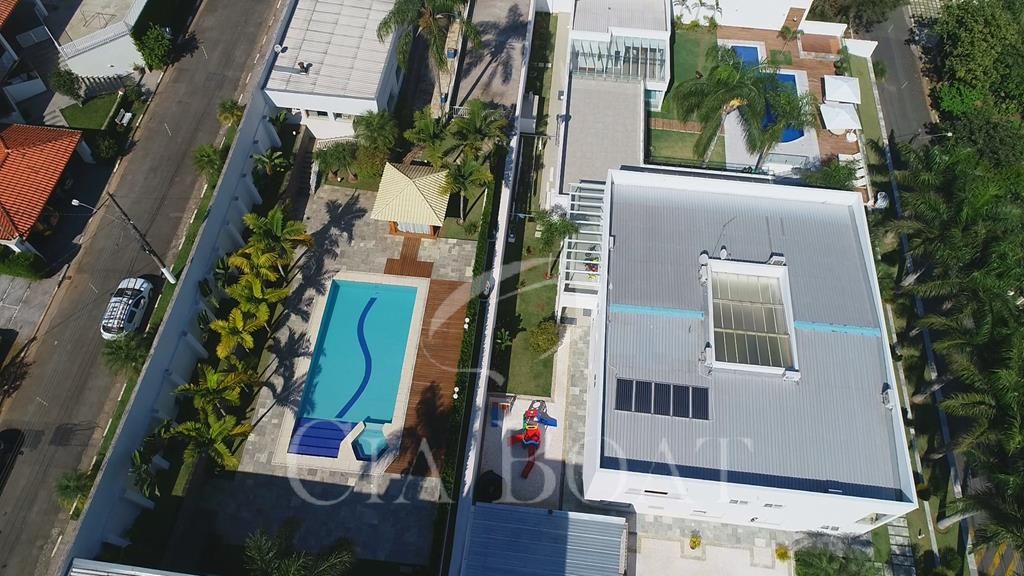 Casa Principal: Com área total de1.950,00 m² e área construída de 1.173,81m², contendo 7 suítes (1 suíte master com closet feminino e masculino, banheiro Senhor e Senhora), 08 banheiros, 3 lavabos, Home office, sala de cinema, sala de estar / jantar, cozinha, lavanderia, espaço e varanda gourmet, piscina, SPA, sauna, barco, kitnete para empregados, Depósito, horta, garagem coberta para 8 carros.