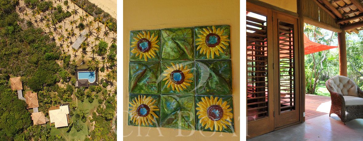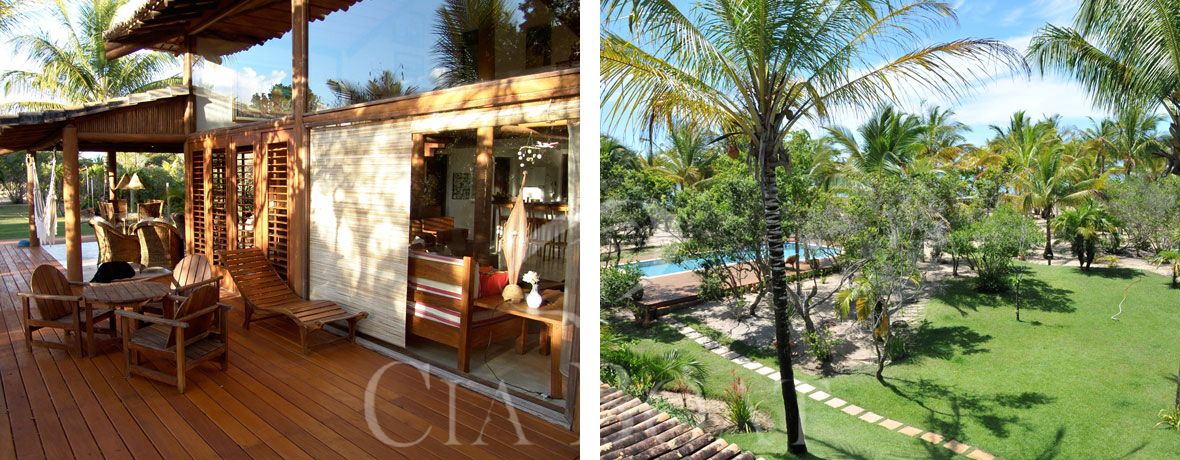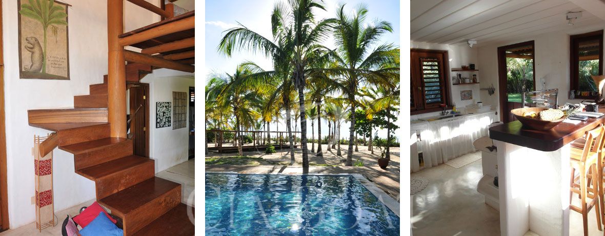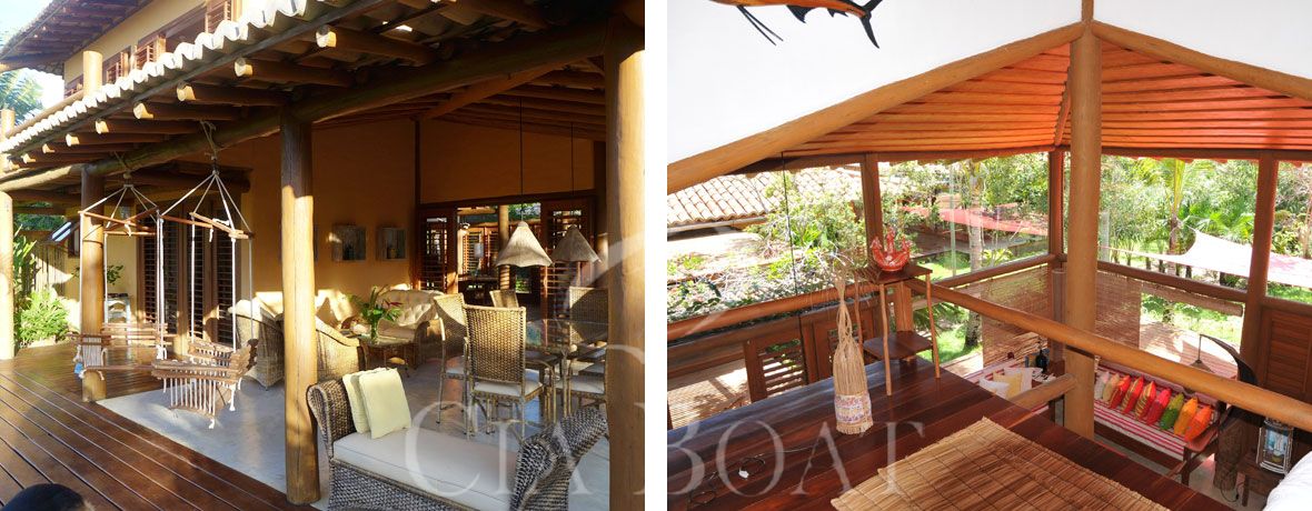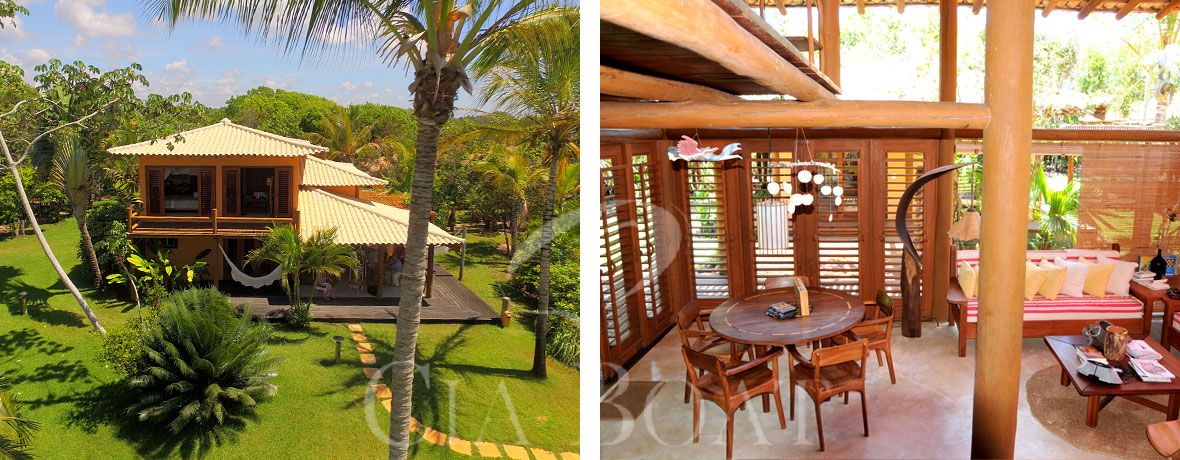 A casa principal tem duas suítes com ar condicionado (quarto e banheiro), um espaço gourmet totalmente equipado, um lounge incluindo um terraço coberto com mobiliário confortável, redes e balangas (cadeiras de balanço). Perto da casa principal, existe mais uma casa para hóspedes, que tem uma suíte com ar condicionado (quarto e banheiro), com camas kingsize, uma pequena cozinha e espaço para montagem de 2 camas de solteiro, conforme solicitação.