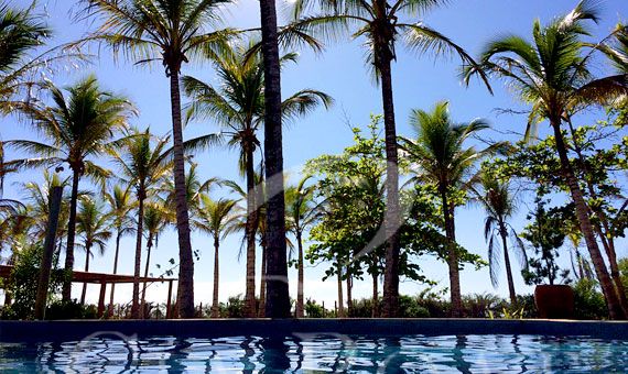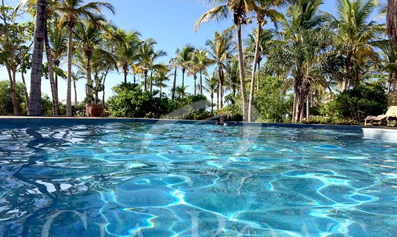 Através de um deck de madeira, uma passarela liga a casa principal a um pavilhão com ar condicionado e uma sala de estar, com um conjunto de cadeiras ultra confortáveis e sofás com TV e acesso WLAN.