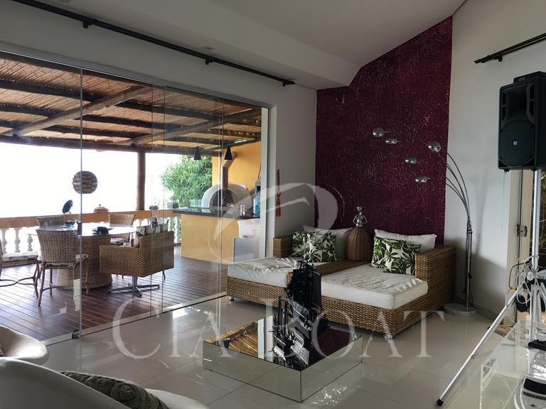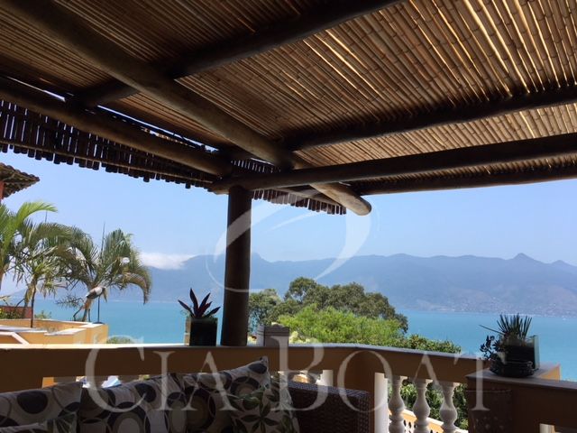 Deck com vista total para o mar e a Ilhabela, 200 metros da praia.