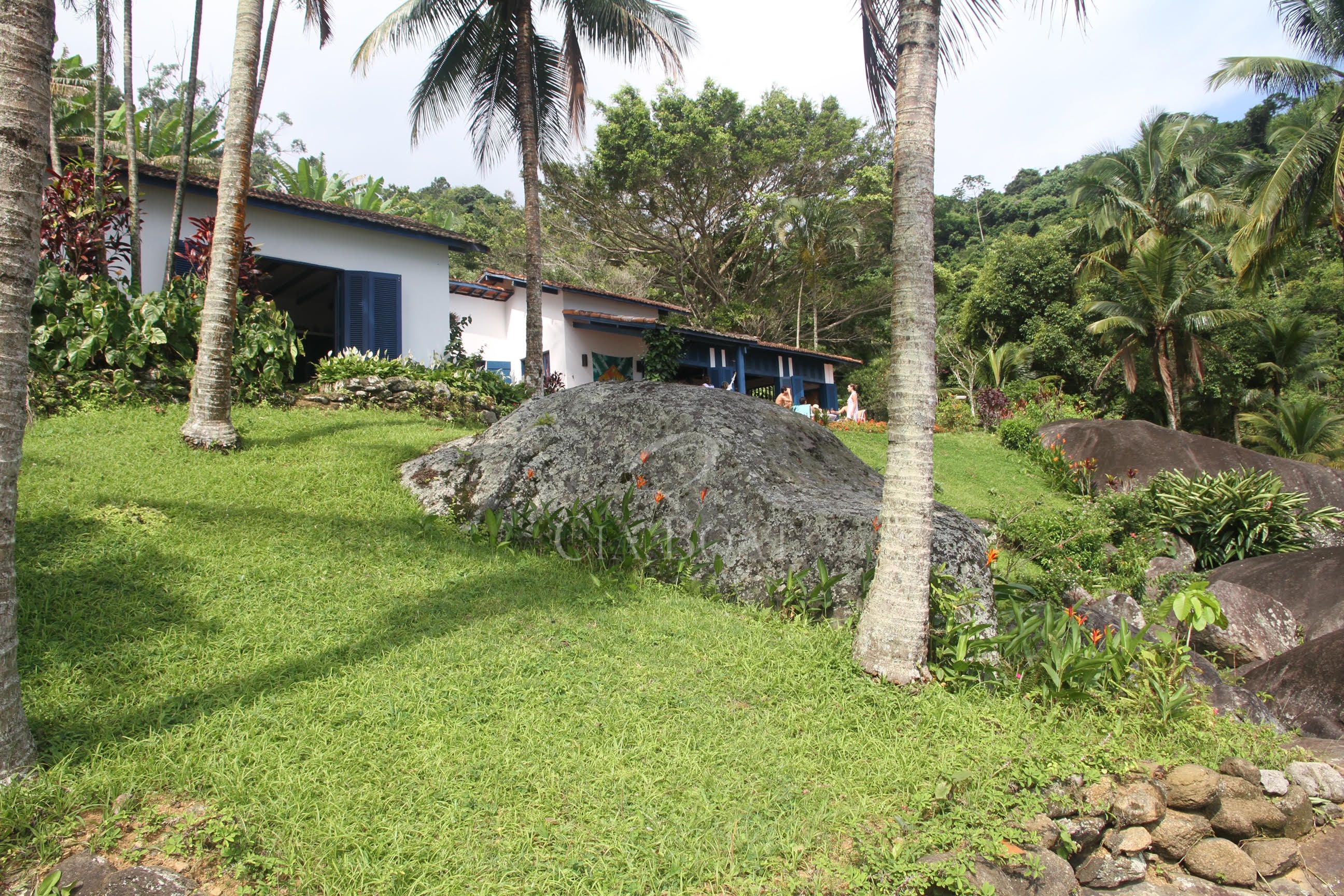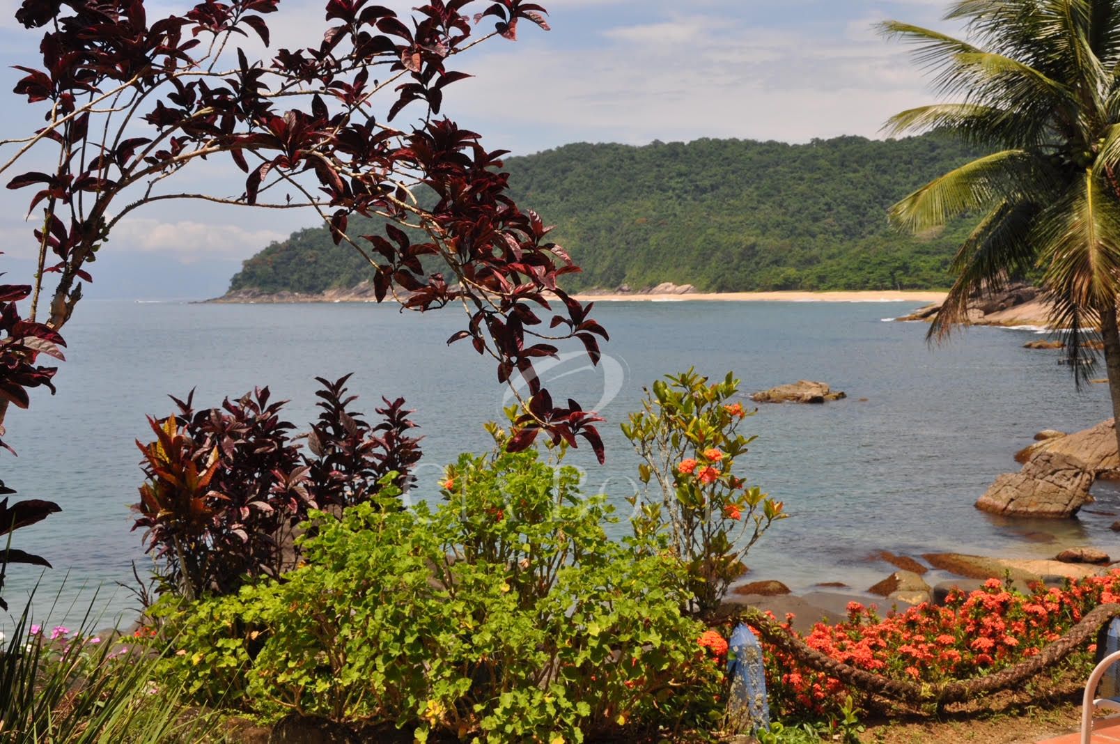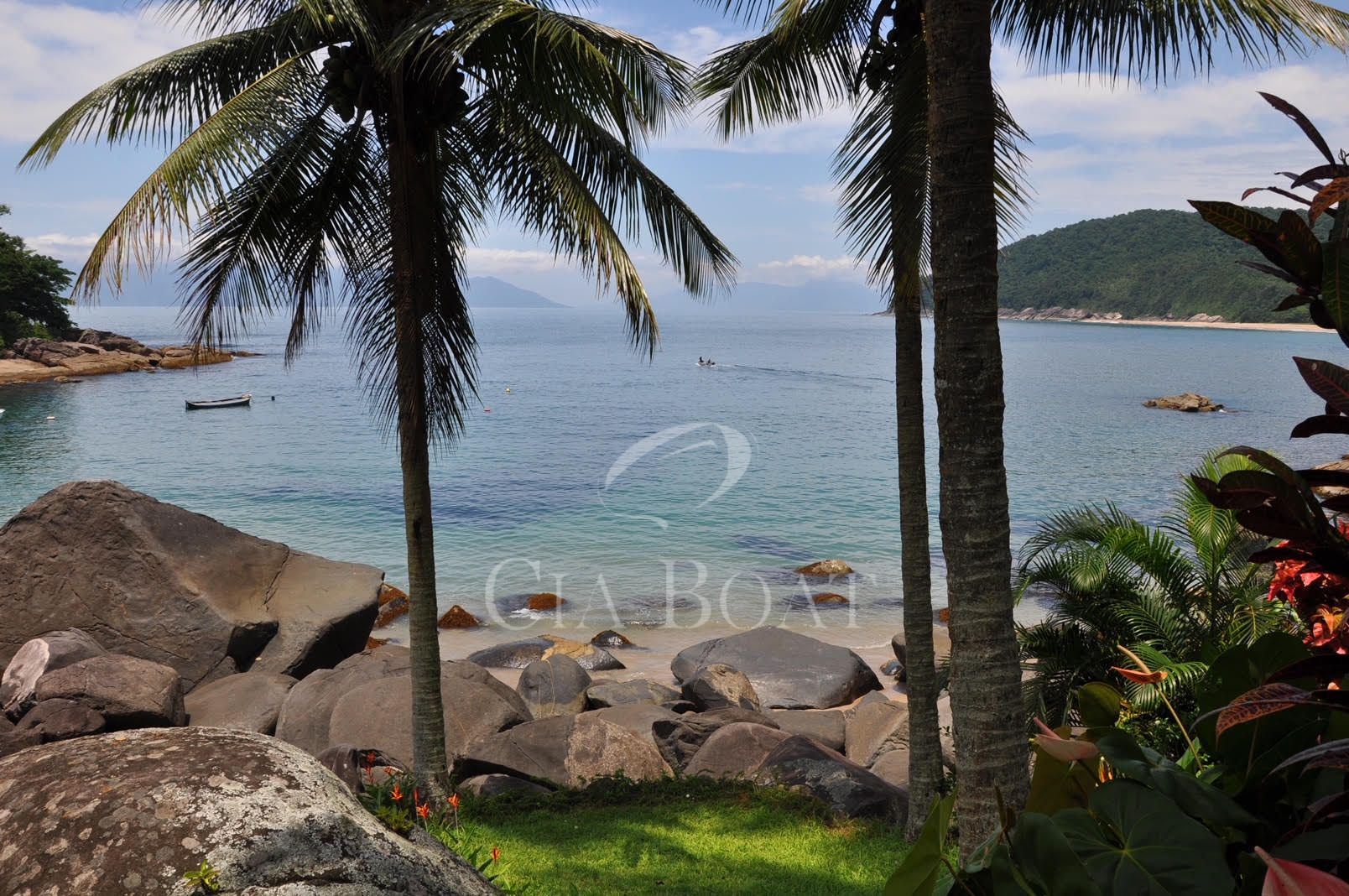 panorâmica de 180° mostra o jardim, a praia particular e
